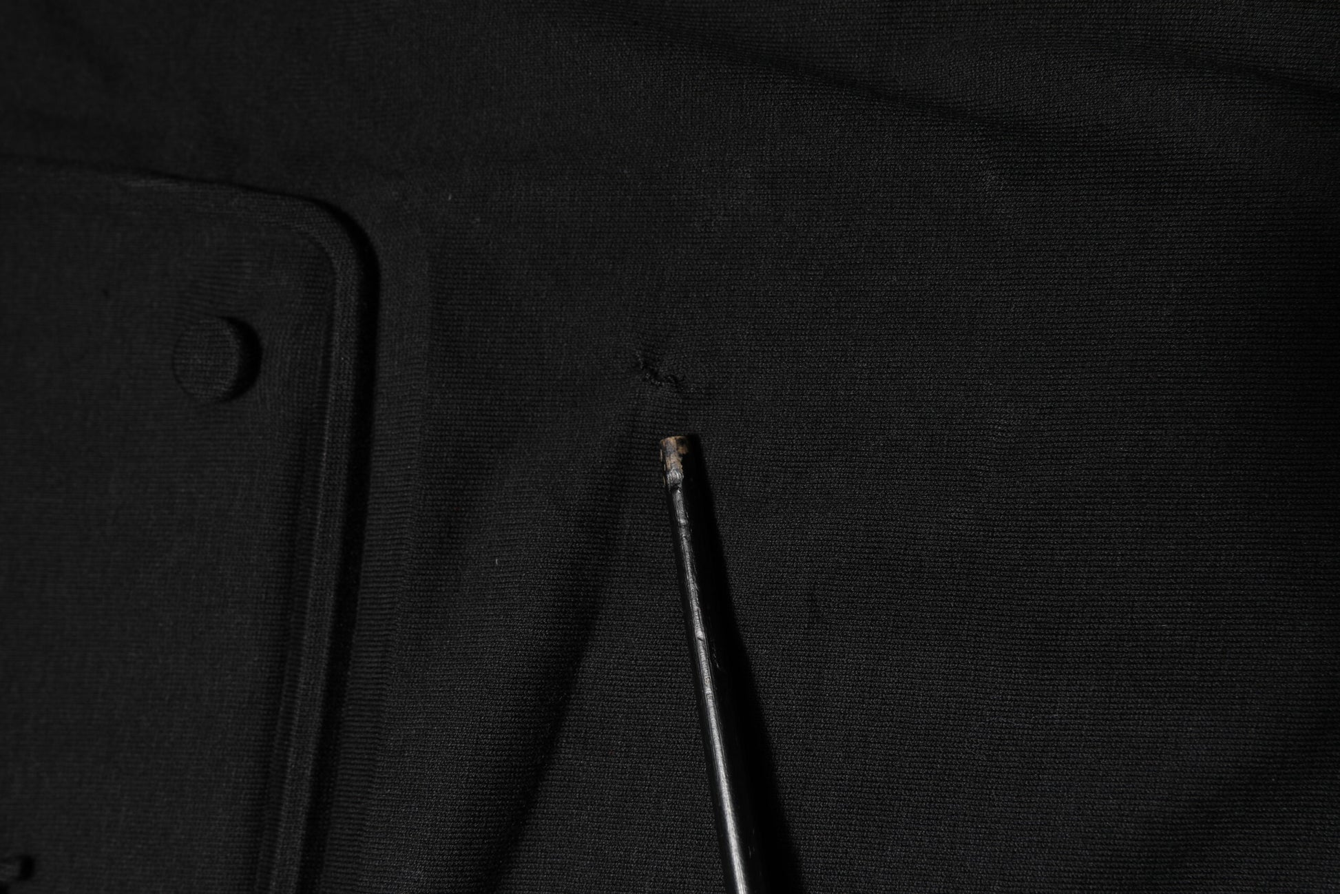 This item has a minor defect, there is a repaired hole on the front side and stains on the front and back side (see pictures for details).