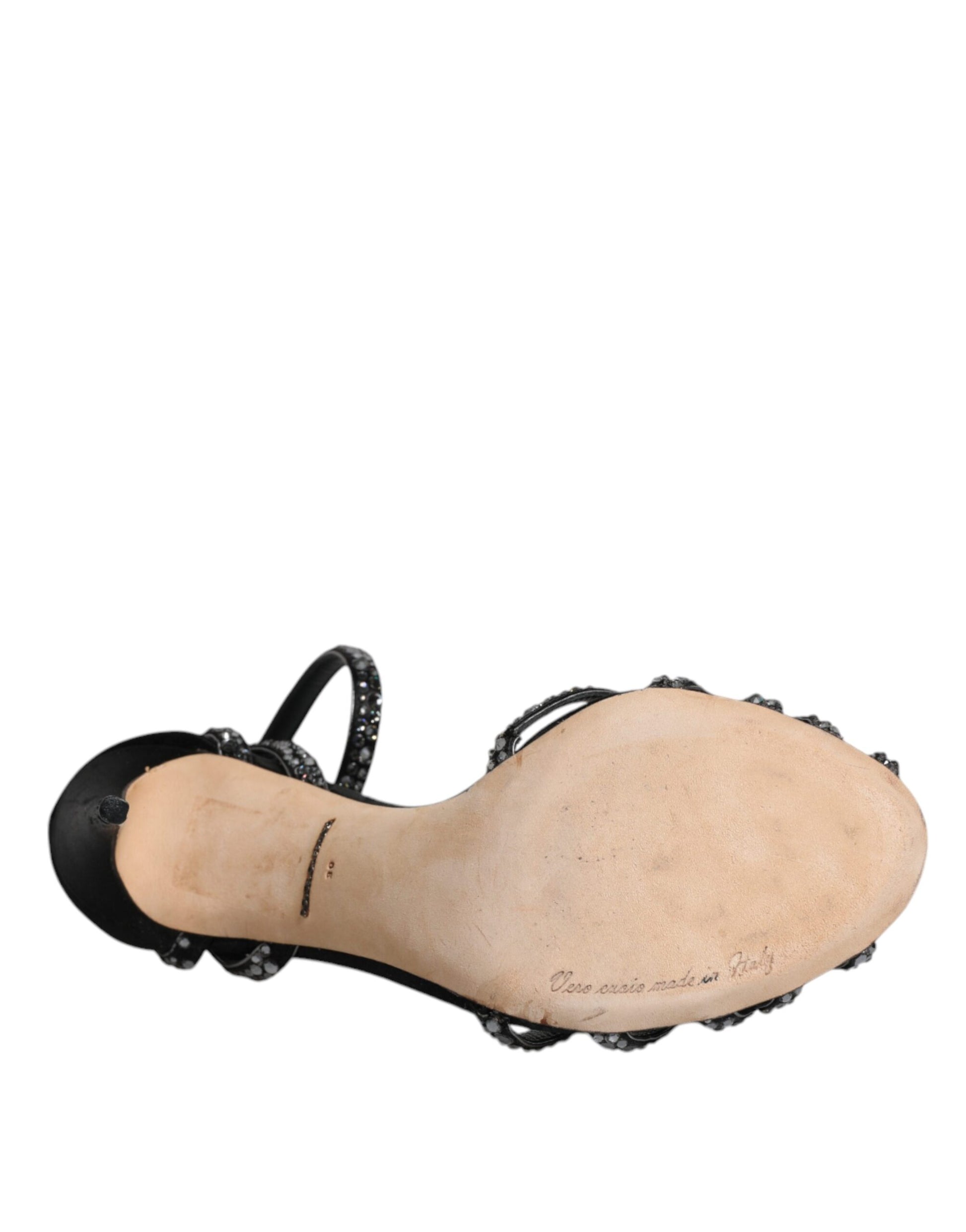 Dolce & Gabbana Black Strass Ankle Strap Heels Sandals Shoes