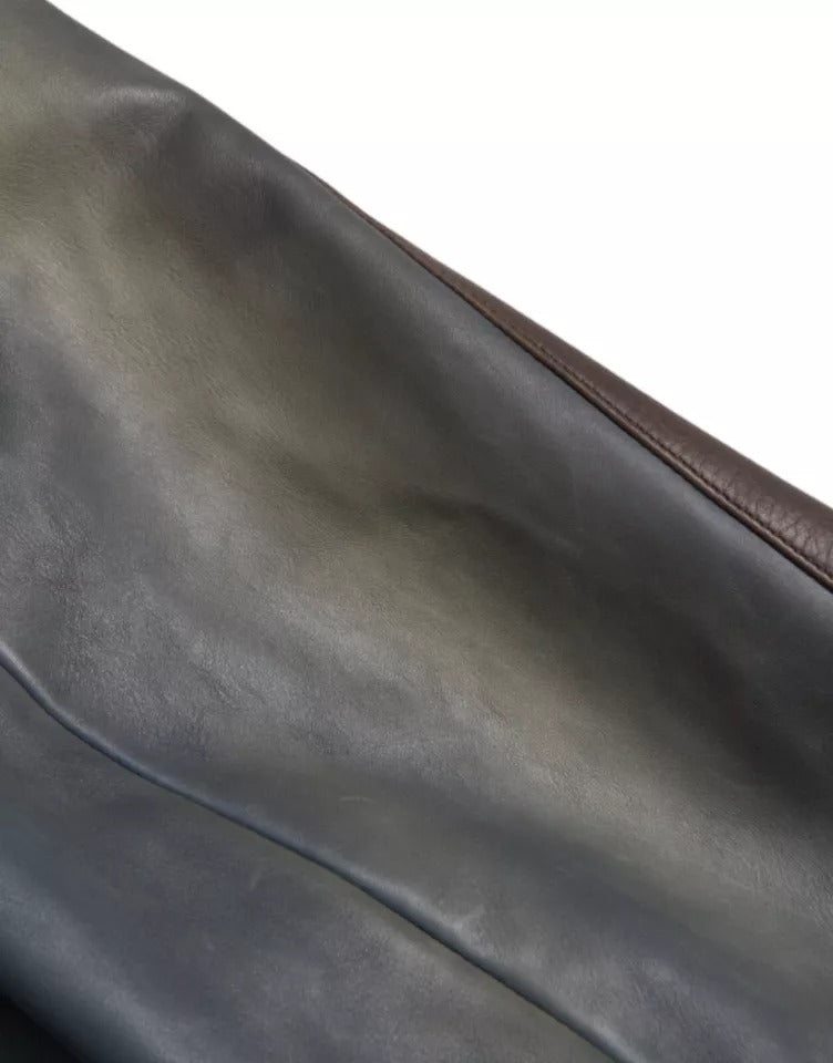 Dolce & Gabbana Blue Leather Full Zip Biker Blouson Jacket