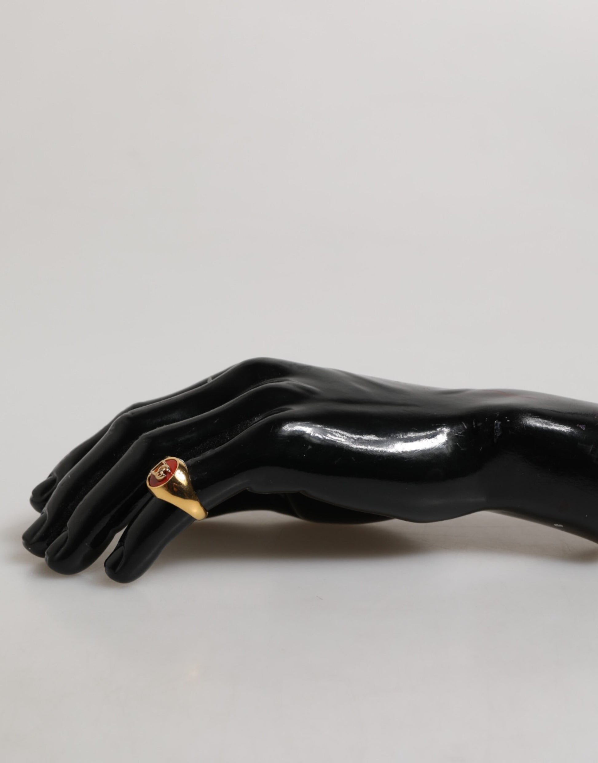 Features a bold round design crafted from gold-tone real brass, highlighted by a striking red enamel DG logo at the center. This statement ring blends modern luxury with signature branding, making it a standout piece for any stylish wardrobe.