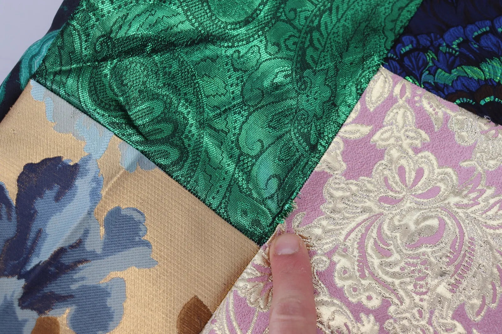 Material: 43% Polyester 33% Cotton 7% Metallic fiber 7% Nylon 5% Rayon 3% Silk 2% Elastane