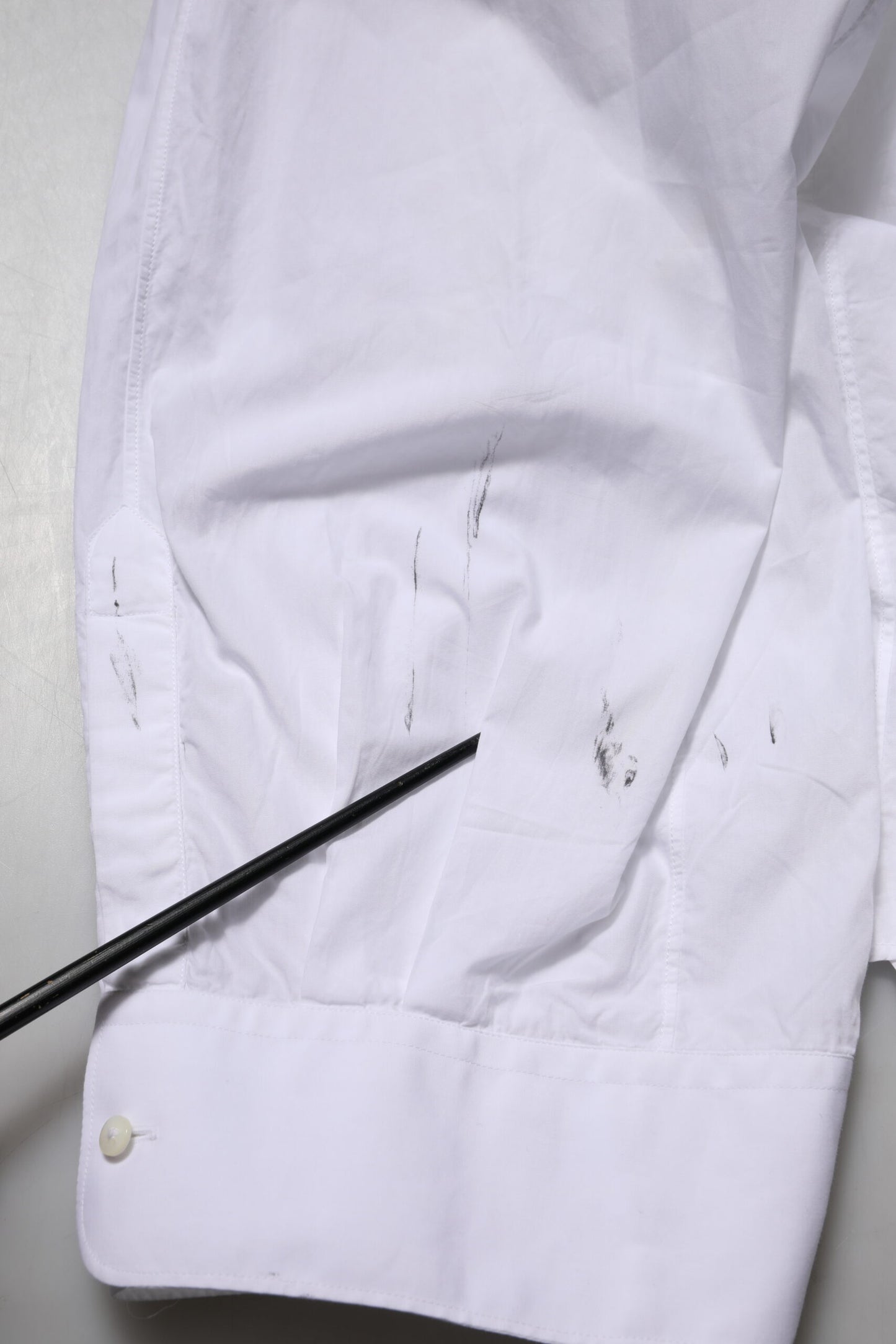 This item is preowned, there are stains on the right sleeve (see pictures for details).