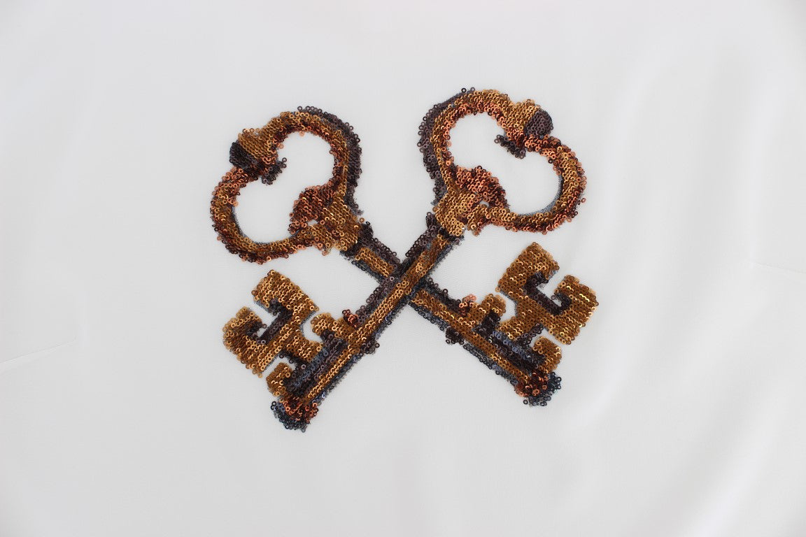 Dolce & Gabbana White Sequined Key Silk Blouse T-shirt Top