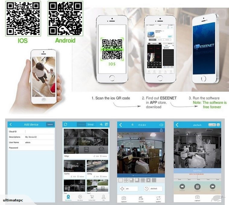View the Security camera system anytime from your Smartphone, including 10″ LCD monitor, Free APP, 64GB storage card and optional Cloud storage.
